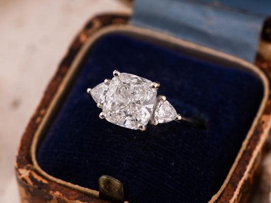 Cushion cut engagement ring three stone engagement ring lab grown diamond ring 3 carat solid gold IGI certified lab grown diamonds