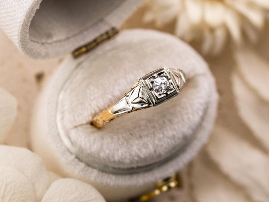 Vintage diamond engagement ring 14k solid gold engagement ring circa 1920s old European cut art deco engagement ring filigree