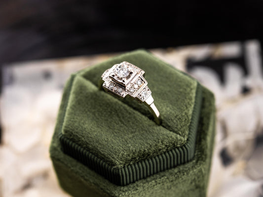 Vintage diamond engagement ring 14k solid gold engagement ring circa 1920s old European cut art deco engagement ring, size 8.75