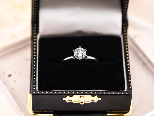 Lab diamond engagement ring round cut 14k solid gold engagement ring round cut solitaire ring 1.04ct lab grown diamond six prong, size 6.5