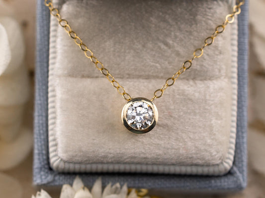 Lab diamond pendant bezel set 14k solid yellow gold necklace pendant dainty bezel necklace yellow gold, white gold, rose gold