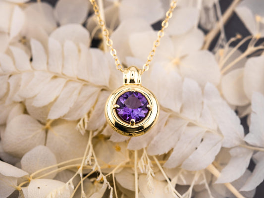 Vintage Amethyst necklace pendant 14k solid gold necklace bezel set chunky statement piece heirloom jewelry