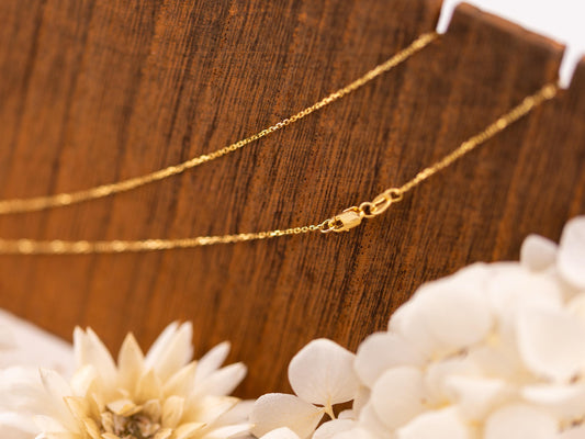 Gold Chain 0.8mm Diamond cut Cable Chain 14k Solid Yellow Gold