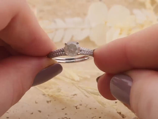 Salt and Pepper Diamond Engagement Ring, 14k White Gold Pave Band, Size 6.5