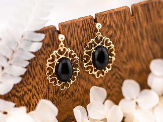Vintage Onyx Earrings Post Dangle Earrings 14k Solid Gold