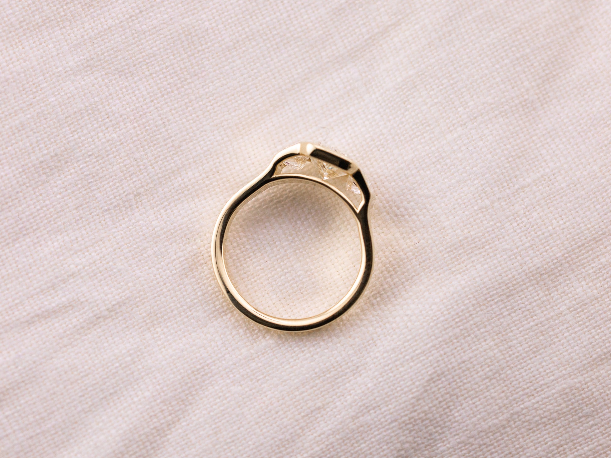 Set in 14k yellow gold with a chunky, tapered band, this ring has a confident, architectural presence — contemporary, substantial, and designed to stand on its own.